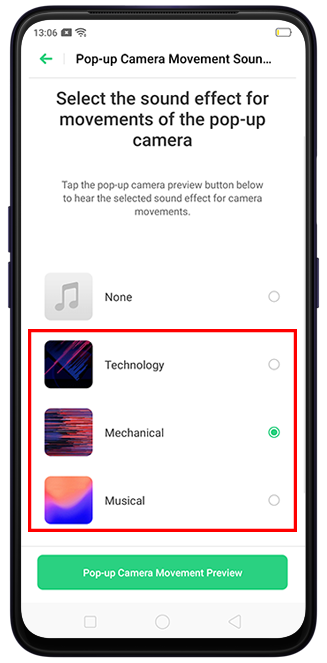 You can also preview the sound effect by tapping [Pop-up Camera Movement Preview].