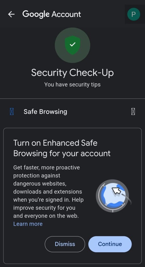 The first step will be to run a security checkup. This will also give you personalized recommendations to make your account more secure. Go to [Settings] > [Google] > [Manage your Google Account] > [Security Tips].
