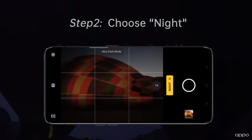 2. Tap [NIGHT]. Your phone will automatically activate Ultra Dark mode to capture more light.