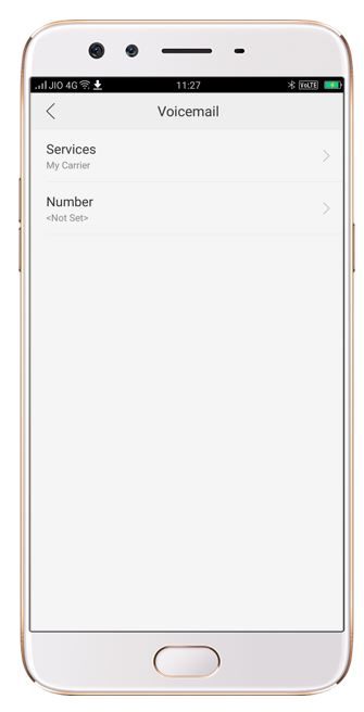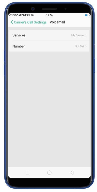 Go to [Settings] > [Call] > [Carrier Call Settings] > [Voicemail] > [Select desired option (Service/Number)].