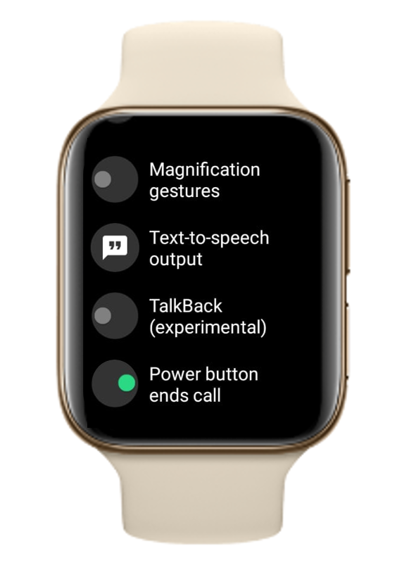 On your OPPO Watch, go to [Settings] > [Accessibility] > Enable/ Disable [Power button ends call].