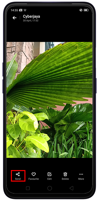 Take a photo or video with the Camera app. Alternatively, you can also select the photo from your [Photos] app. Tap [Send] and choose your desired social media app.