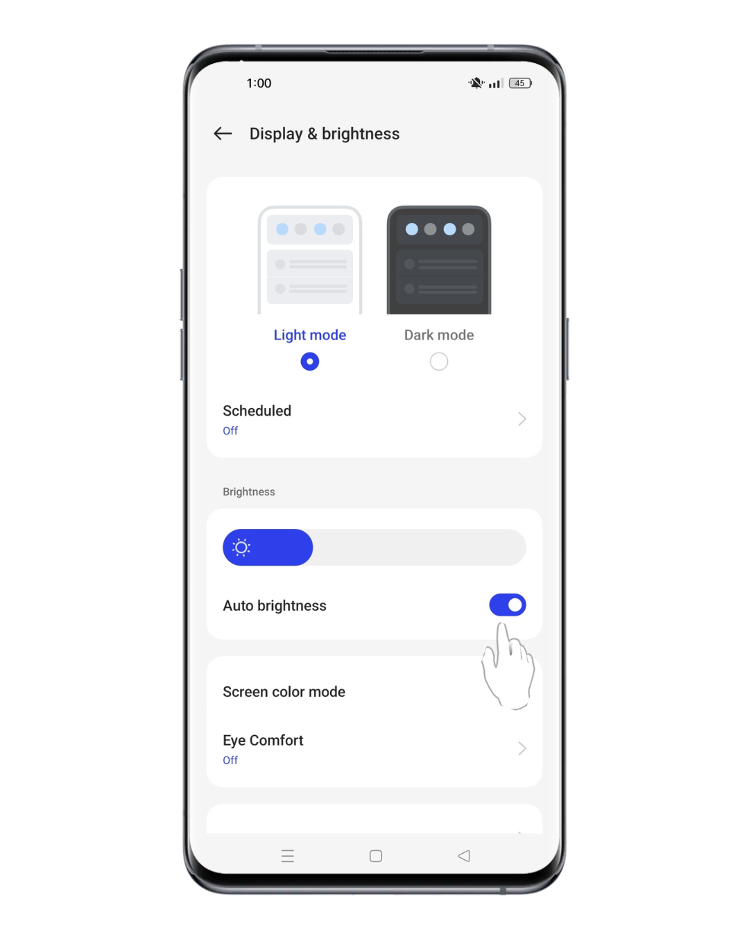 Go to [Settings] > [Display & brightness] and toggle [Auto brightness].