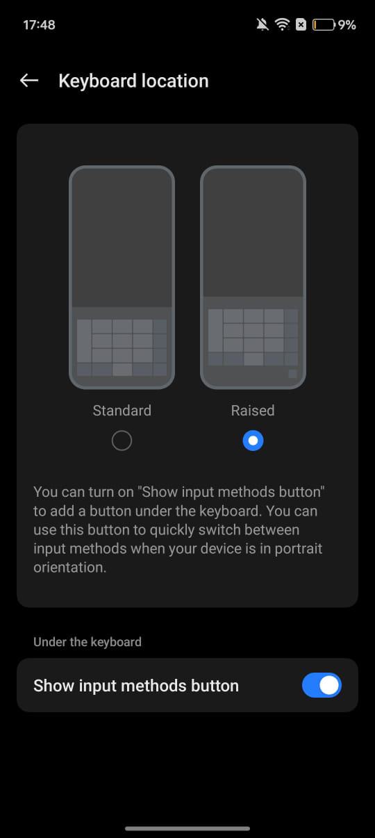 Open [Settings] > [System & updates] > [Keyboard and Input Method] > [Keyboard location]> [Click on Raised].