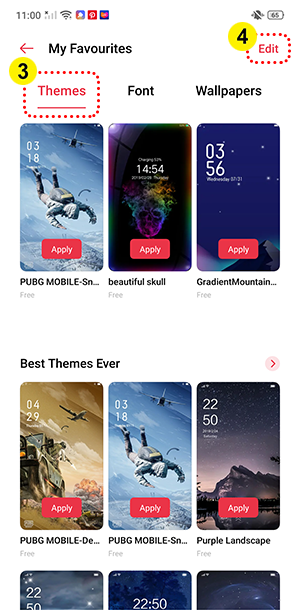 Situation: You want to remove unused themes from favorites in HeyTap Theme Store.