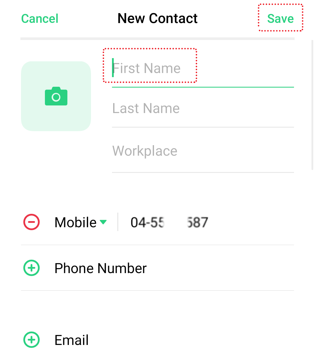 2. Tap [Create New Contact].