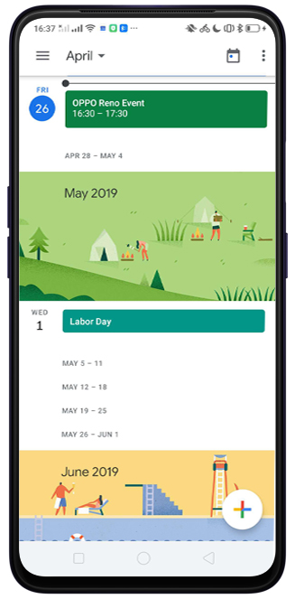 To start organizing your Calendar, on the Home Screen, tap Calendar, tap and choose if you want to add a Event.