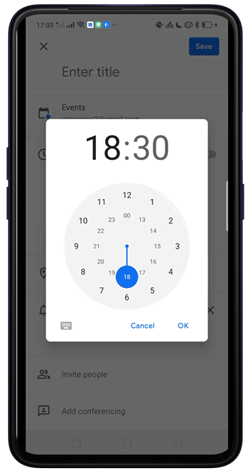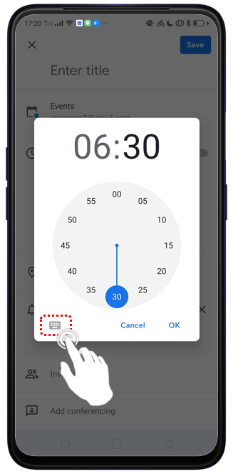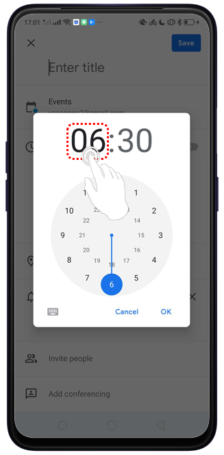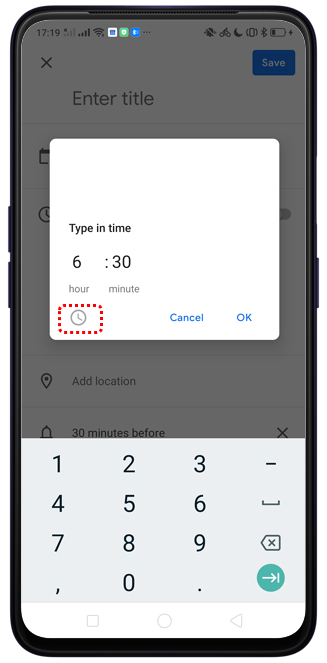 2. The Type option. While you are on the drag option of customizing time, tap then you will be given an option to type in the time that you would want for the event. Tap OK once done. If you want to return to Drag mode, tap