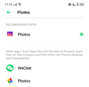 For ColorOS 5.0- 5.2: Go to [Settings] > [App Management] > [Default App Management] > [Photos] > and tap the preferred photo viewer app to set as default.