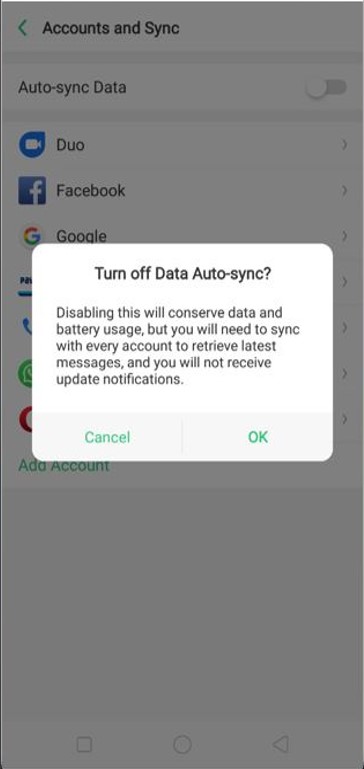 For ColorOS 3.1 to 7.2: Go to [Settings] > Click on [Account & Sync] > Enable [Auto Sync Data] > Click on [Google] > Select [Account] > Click on [Sync Now/ Remove Account].