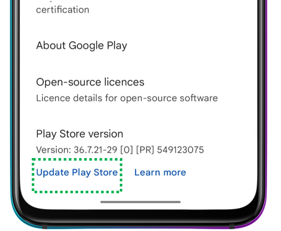 Tap it and it will check for any updates available. Google Play Store will start downloading the update automatically if an update is available. However, if there’s none, you’ll see a pop-up message saying, “Google Play Store is up to date" or "You have the latest version, requiring no update".