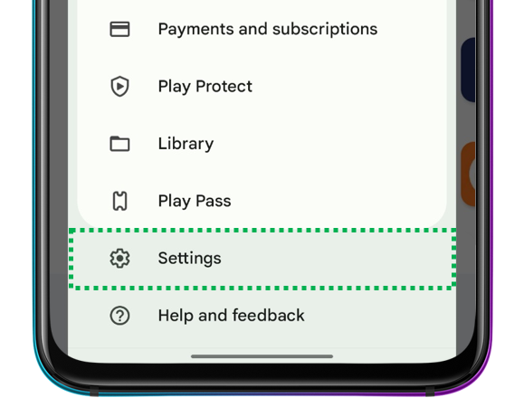 Tap [Settings] and scroll down till you find the [About] option and then click on [Update Play Store].