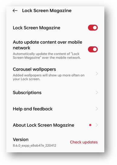 PS:This feature is supported from V 8.6 Lock Screen Magazine.