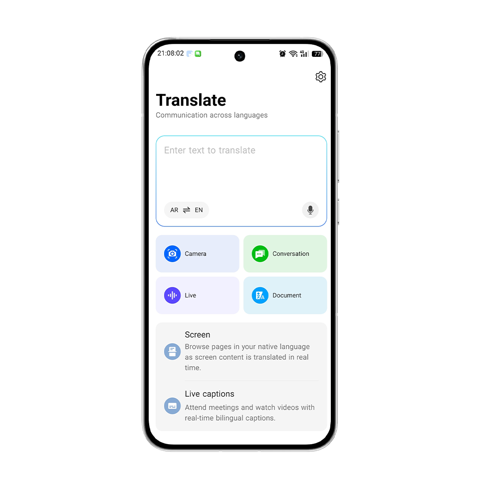 Note: This Translator tool is applicable to OPPO phone models with a pre-installed translation app running on ColorOS 15.0.1. Some ColorOS 15.0 models are updated through OTA upgrades.