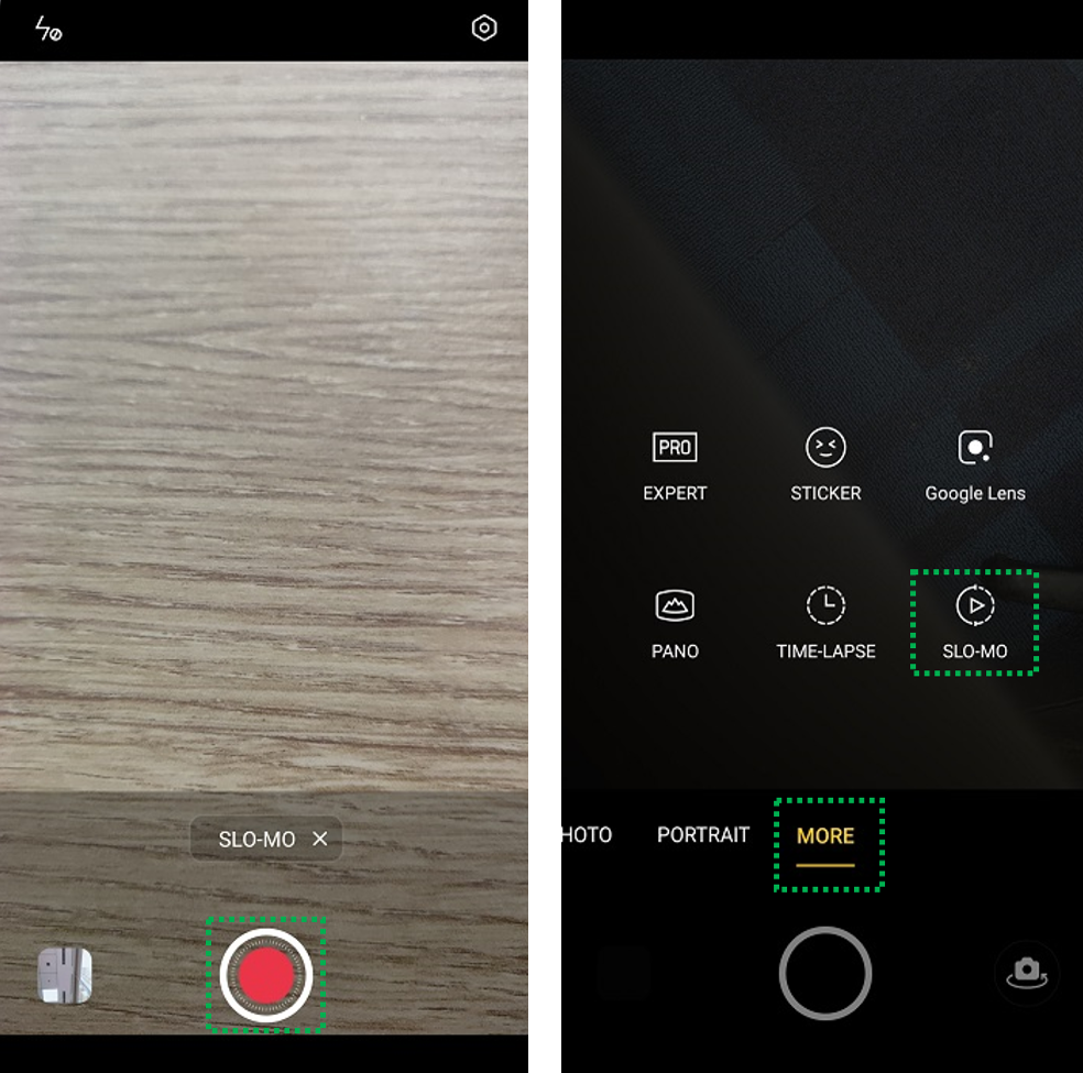 sign at the top middle side of the camera > Select [Slo-Mo].