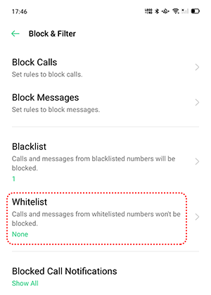 Situation: You want to learn how to whitelist numbers in ColorOS 7.0 and above devices.