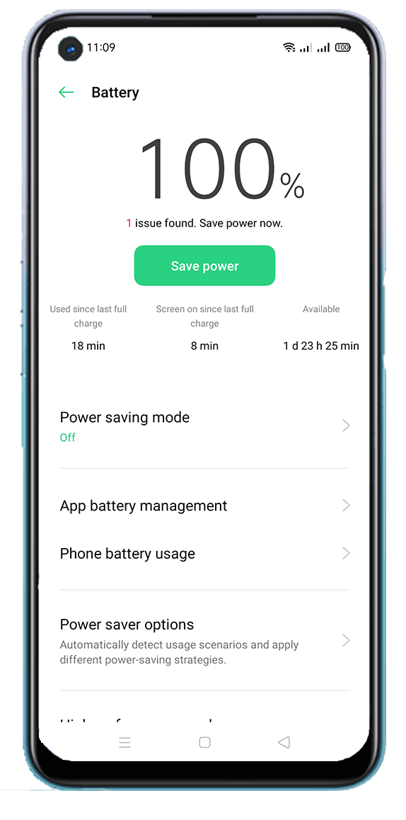 Battery saving mode on OPPO A92