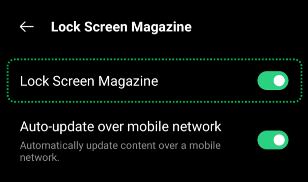 ចូលទៅកាន់ [ការកំណត់] > [អេក្រង់ដើម & ទស្សនាវដ្តីចាក់សោអេក្រង់] > [LEHUA Lock Screen] > បើក [ទស្សនាវដ្តីចាក់សោអេក្រង់]។