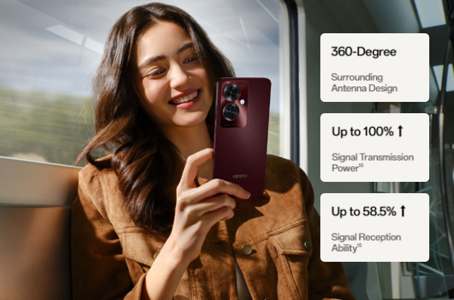 The OPPO F25 Pro 5G devices offer up 100% faster transmission power and 58.5% stronger reception