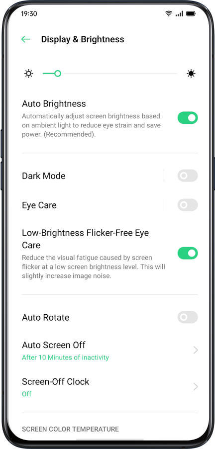 No Low-brightness flicker-free eye comfort function/no DC dimming function on OPPO Reno5/Reno6