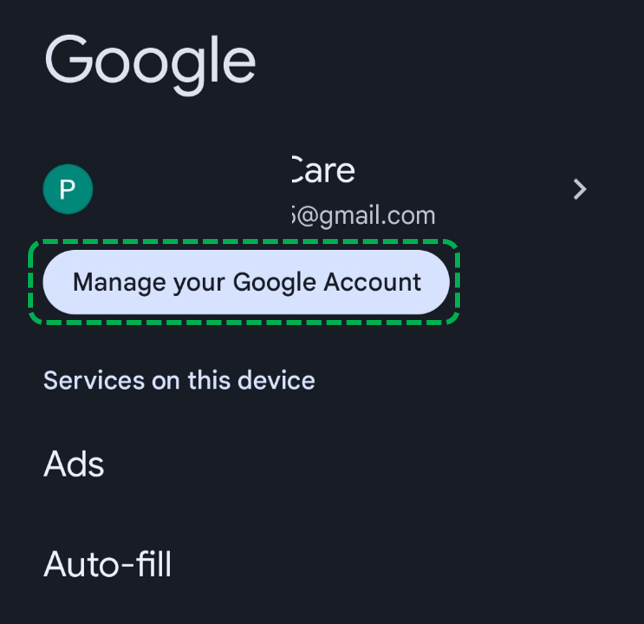 Go to [Settings] > [Google] > [Manage Your Google Account] > [Personal Info] > [Contact Info].