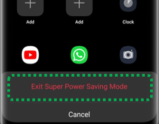 In Super Power Saving Mode, 6 apps can be used, among which Phone, Messages, & Browser are the default apps and can be changed, the user can select the remaining 3. This uses multiple power mechanisms such as adjusting the CPU frequency and brightness levels.
