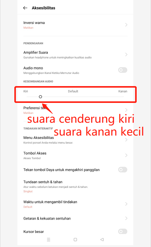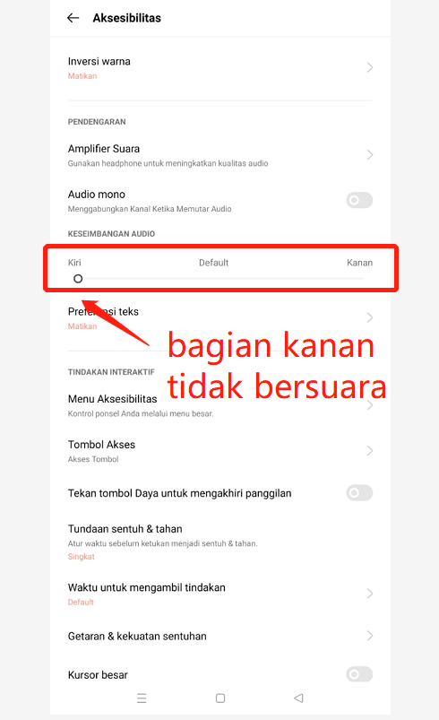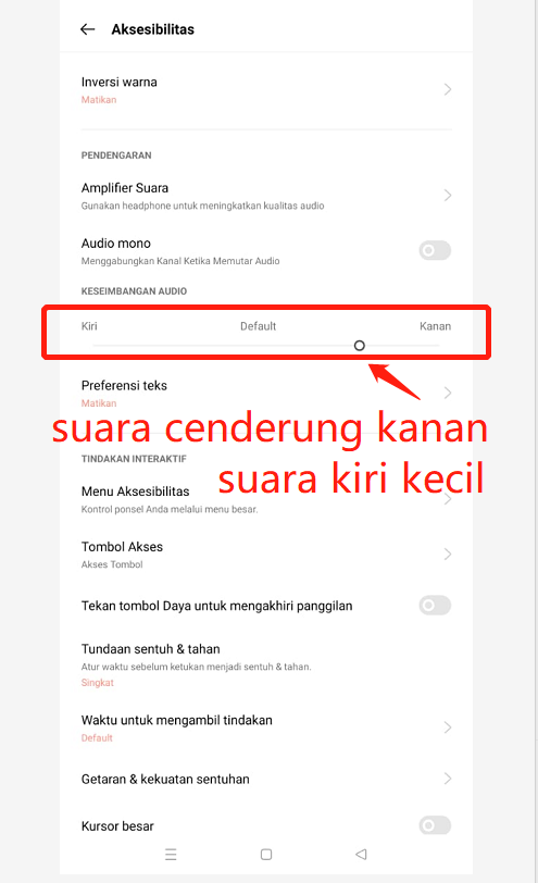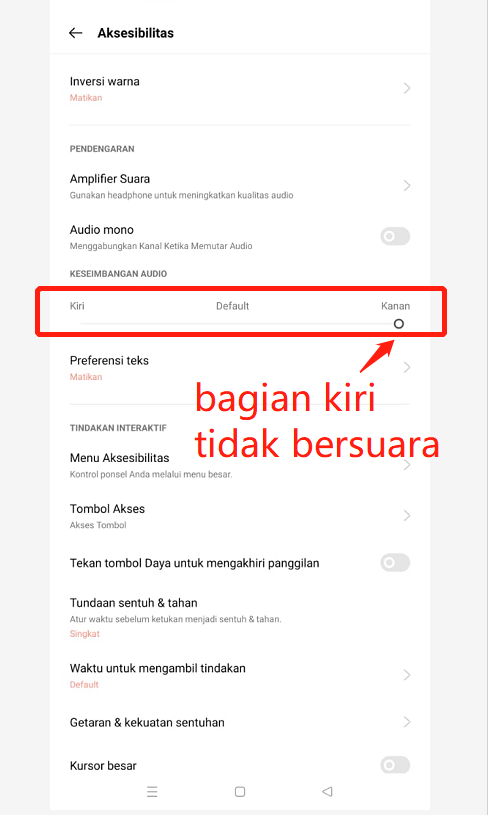Jika Keseimbangan Audio pilih cenderung ke kiri/ Kiri - maka volume suara pada Kanan akan terdengar kecil bahkan tidak bersuara