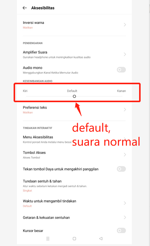 Jika Keseimbangan Audio pilih Default -- maka volume suara Kiri dan Kanan akan jadi seimbang