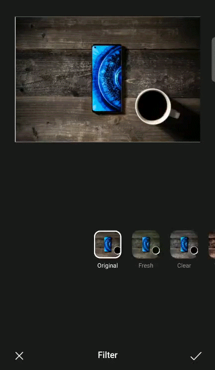 To add a dramatic flair on this image, we can edit and make it better by using some filters. To do this, on the home screen of your phone, open [Photos app] > choose the image you want to edit > [Edit] > [Filter] > choose the filter you want then tap [ā] when done.