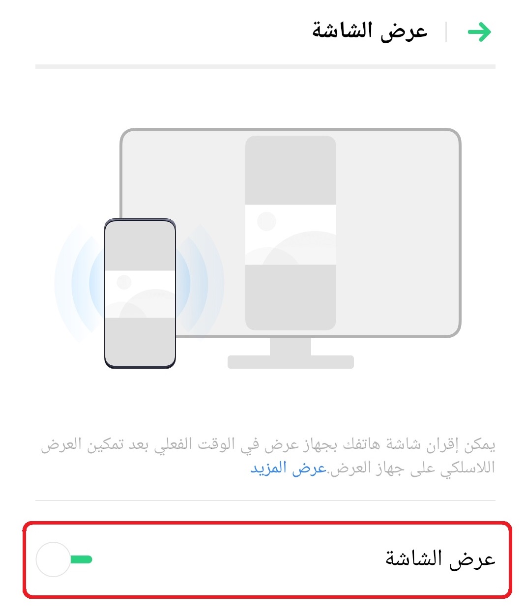 من خلال الإعدادات. انتقل إلى [الإعدادات]> [اتصالات لاسلكية أخرى]> [عرض الشاشة]> قم بتفعيل [عرض الشاشة].