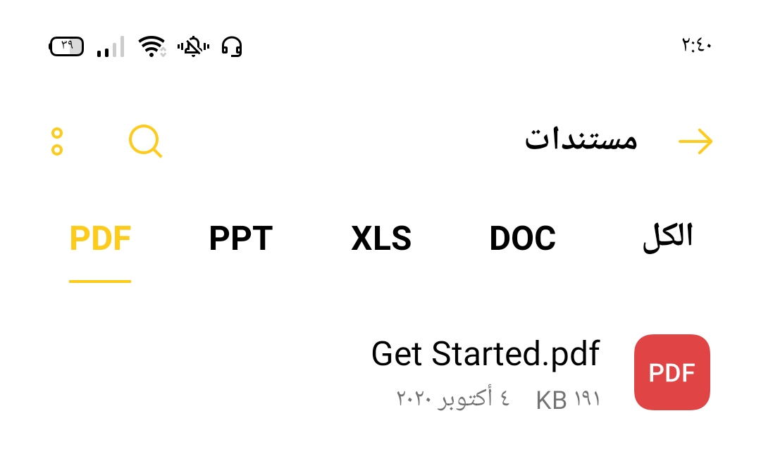 أنواع المستندات التي يمكن حفظها هي Word Doc وملف Excel وعروض PowerPoint التقديمية وملفات PDF. قد تتطلب منك بعض المستندات تثبيت تطبيق لفتح الملف وعرضه. سيوصي مدير الملفات بالتطبيق المطلوب لفتح الملف.