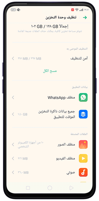 > [مسح التخزين] > [منظف الصور]، و اضغط على اى فئة من فئات الصور .