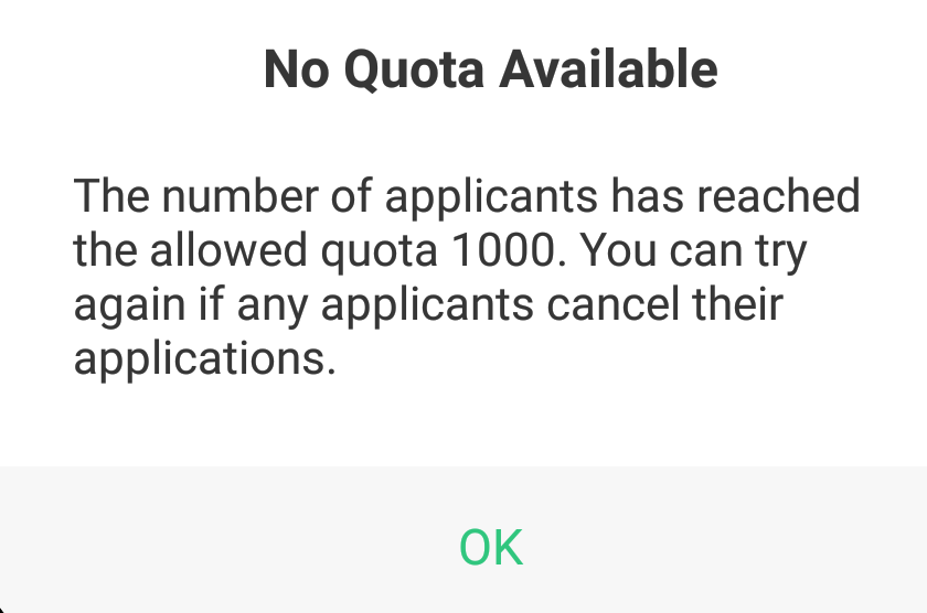 Situation: You were applying for ColorOS 6 trial version but you received a notification saying no quota is available.