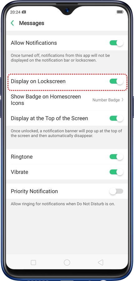 Nota: No todas las aplicaciones admitirán mostrar notificaciones en la pantalla de bloqueo.