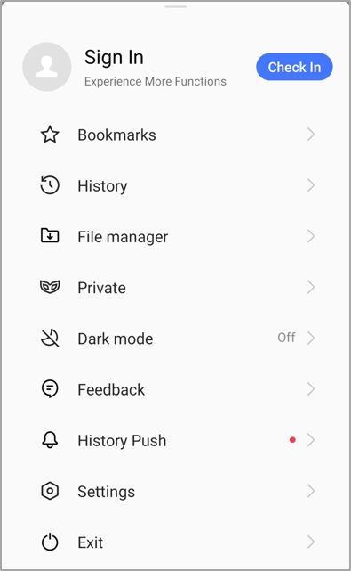 Note: Add Bookmark, Share, and Refresh will be greyed out when you are on the homepage of the OPPO Browser.