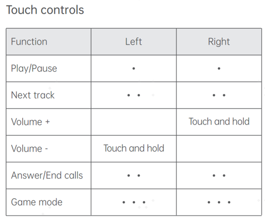 4. In-call noise reduction works well for common noise in daily life, but it may compromise in the presence of a strong wind, on a fast-moving motorbike, or in other special scenes where wind pressure dampens sound pick-up. So please try to avoid using the earbuds for calls in places with powerful airflow. The in-call noise reduction may also be compromised in a hubbub. It is recommended that you raise your voice for better audio quality.