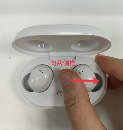 a) Try to avoid the control area of the earbuds when you take them, as shown below.