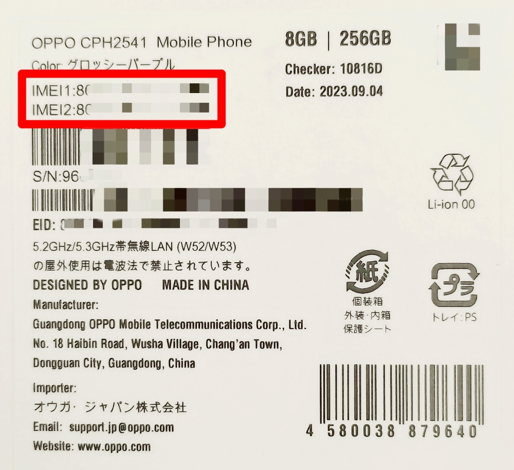 OPPO製品のIMEI番号・シリアル番号(S/N)の確認方法|OPPO