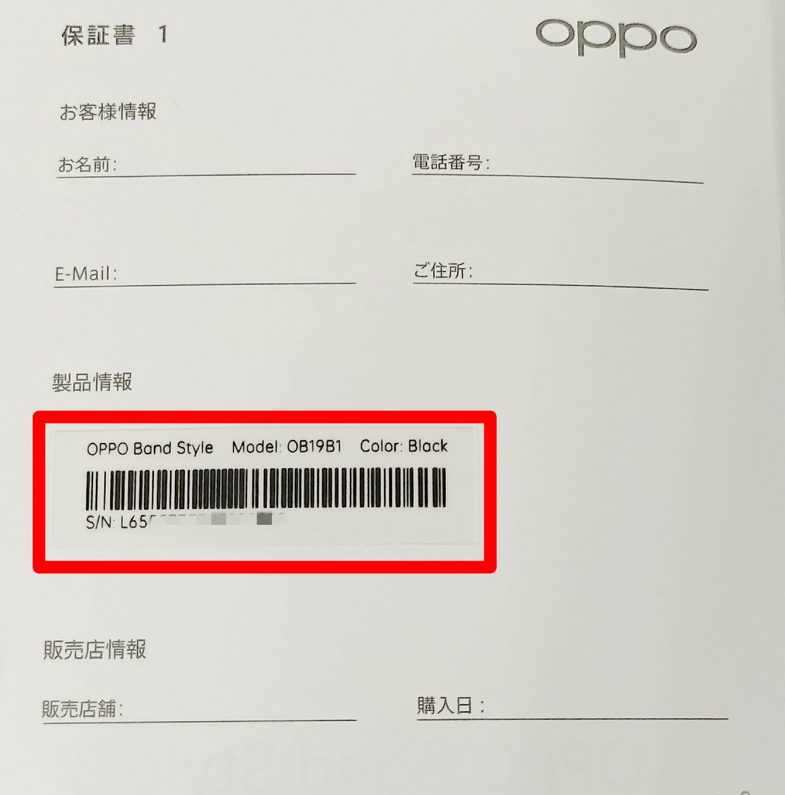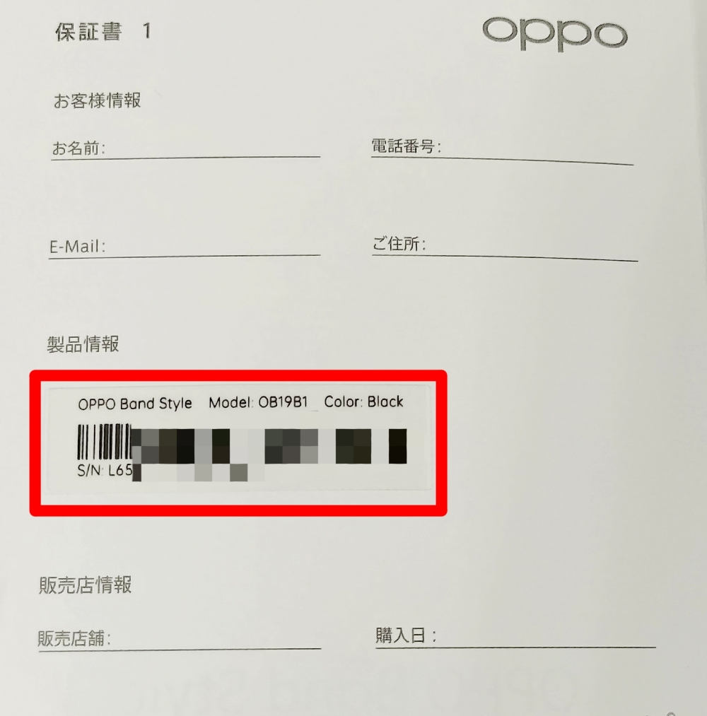 OPPO Band Style :[⚙設定]>[バンドについて]>[シリアル番号]