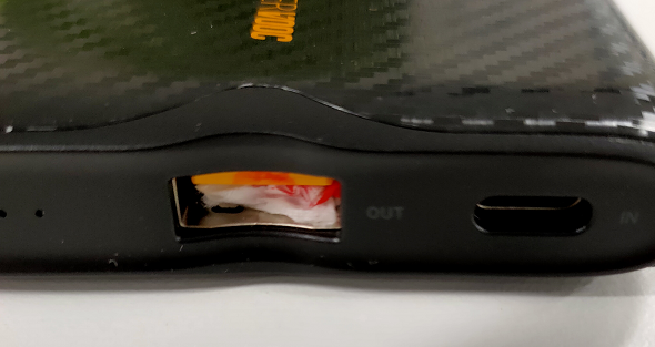 | Damaged by liquid | There is an abnormal sound when shaking the power bank, and the USB jack has obvious water stained and rusted. | OOW |