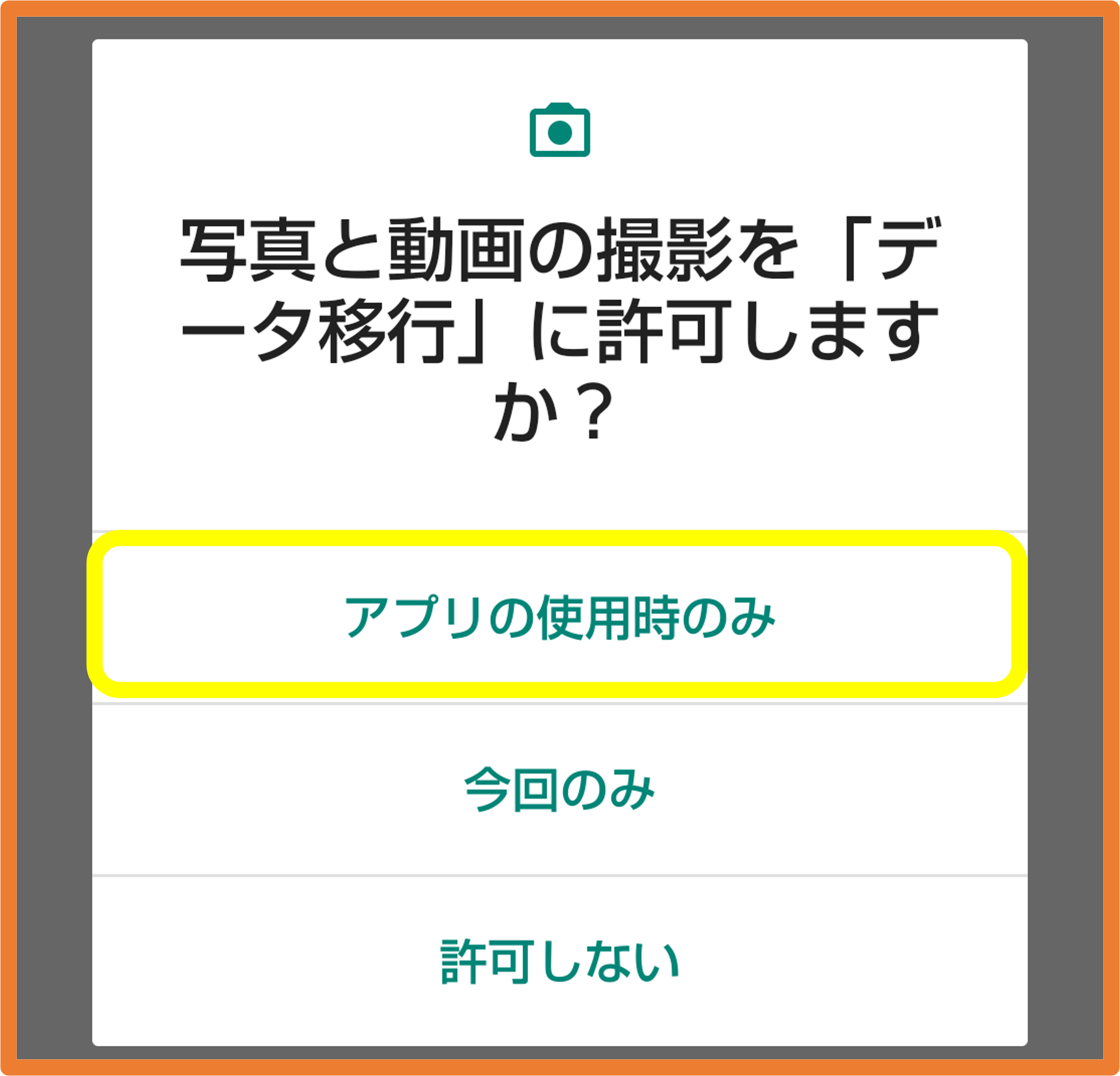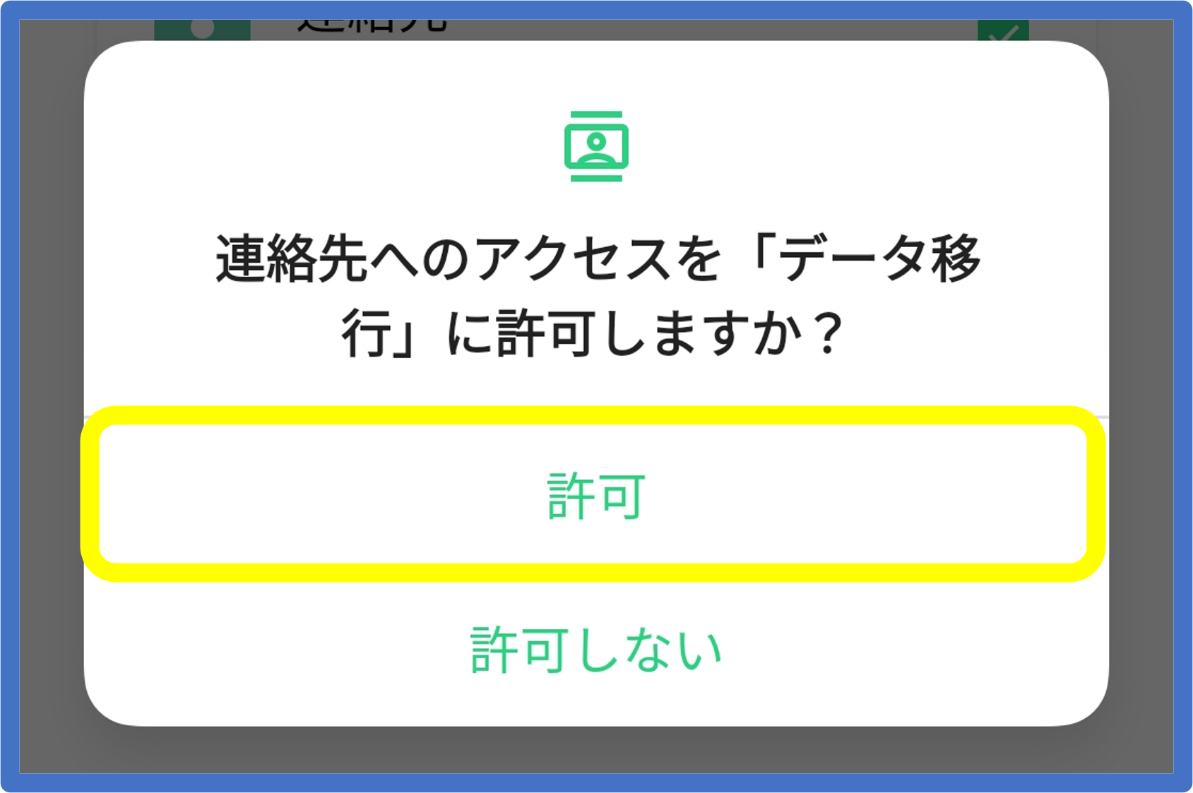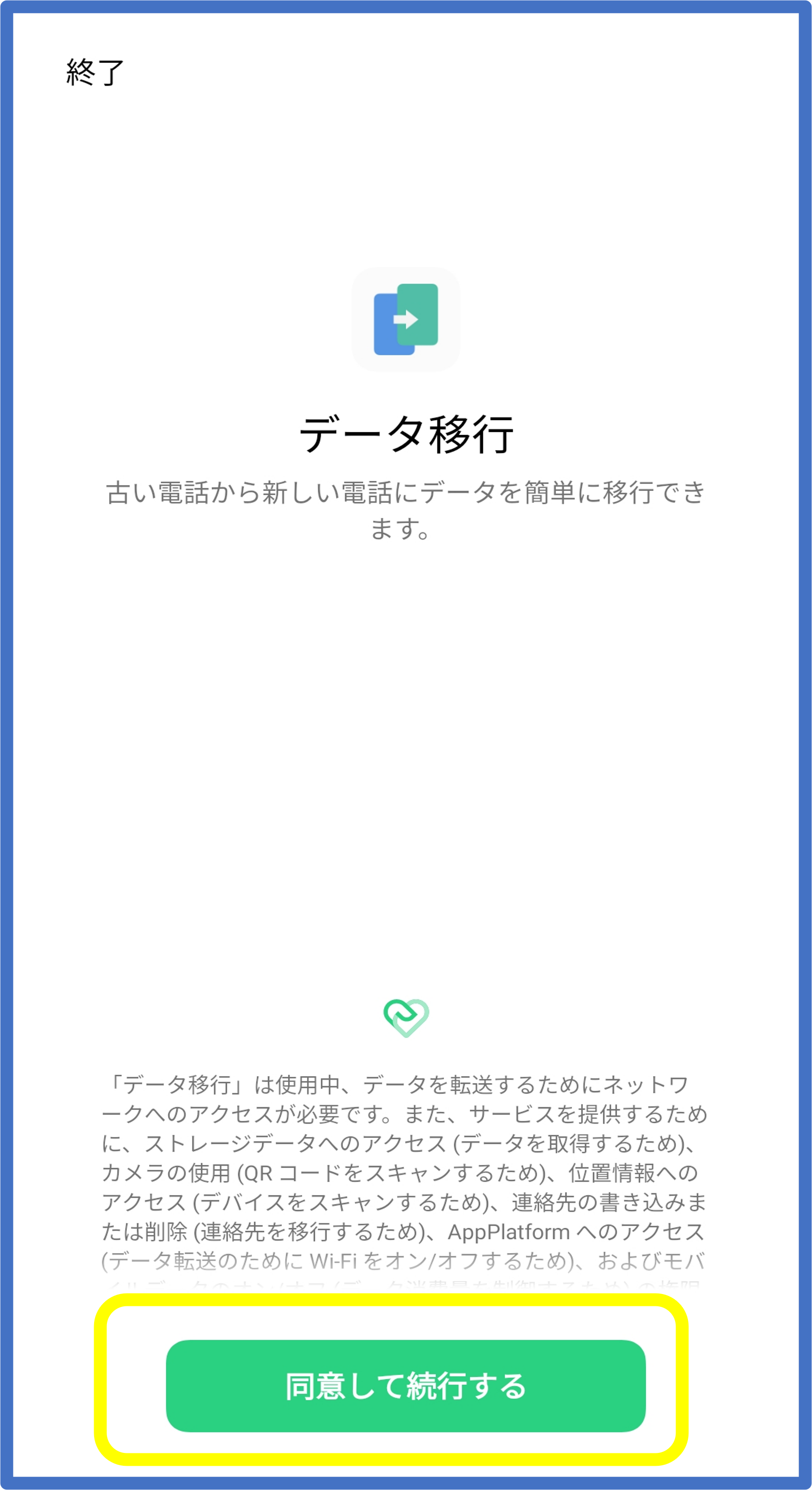 ⑦ 各種アクセス許可の設定を行い、[データの移行を開始]をタップします。