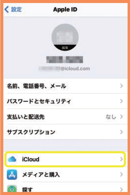③ [iCloud]をタップします。