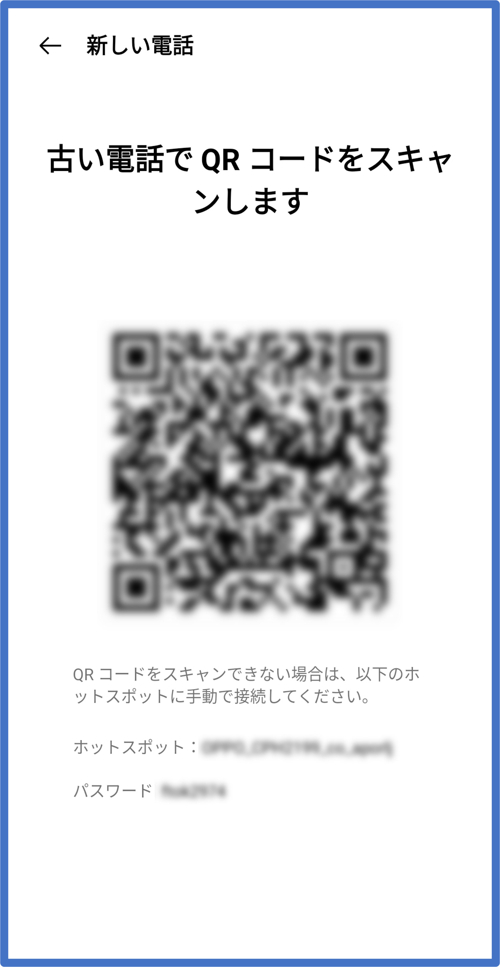 ⑧ QRコード読込みの画面が表示されるので、新端末に表示されたQRコードを読込みます。
