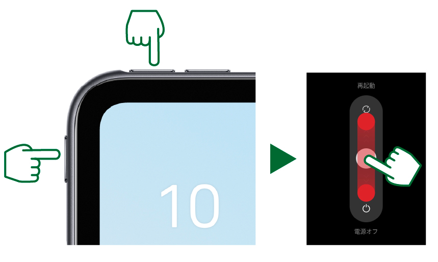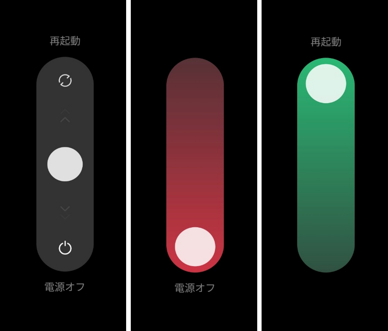 再起動したい場合は中央の白い丸ボタンを上方(再起動)に向かってスワイプします。