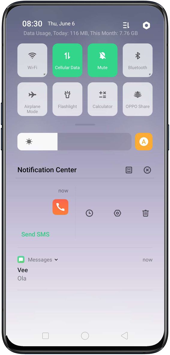Show data usage at the top of the notification bar: Go to [Settings] > [Notifications & Status Bar] > [More settings] > [Display data usage in notification drawer]. Your daily and monthly data usage will display at the top of the notification bar.