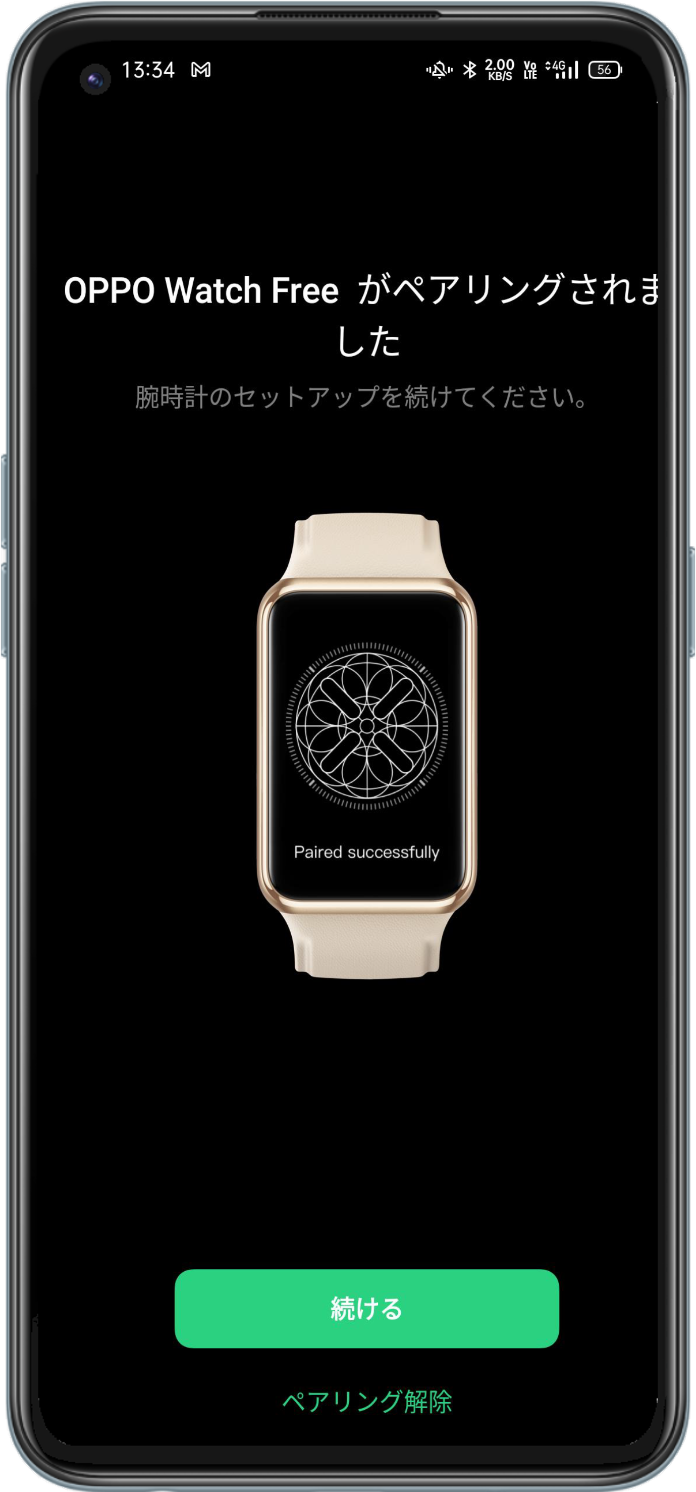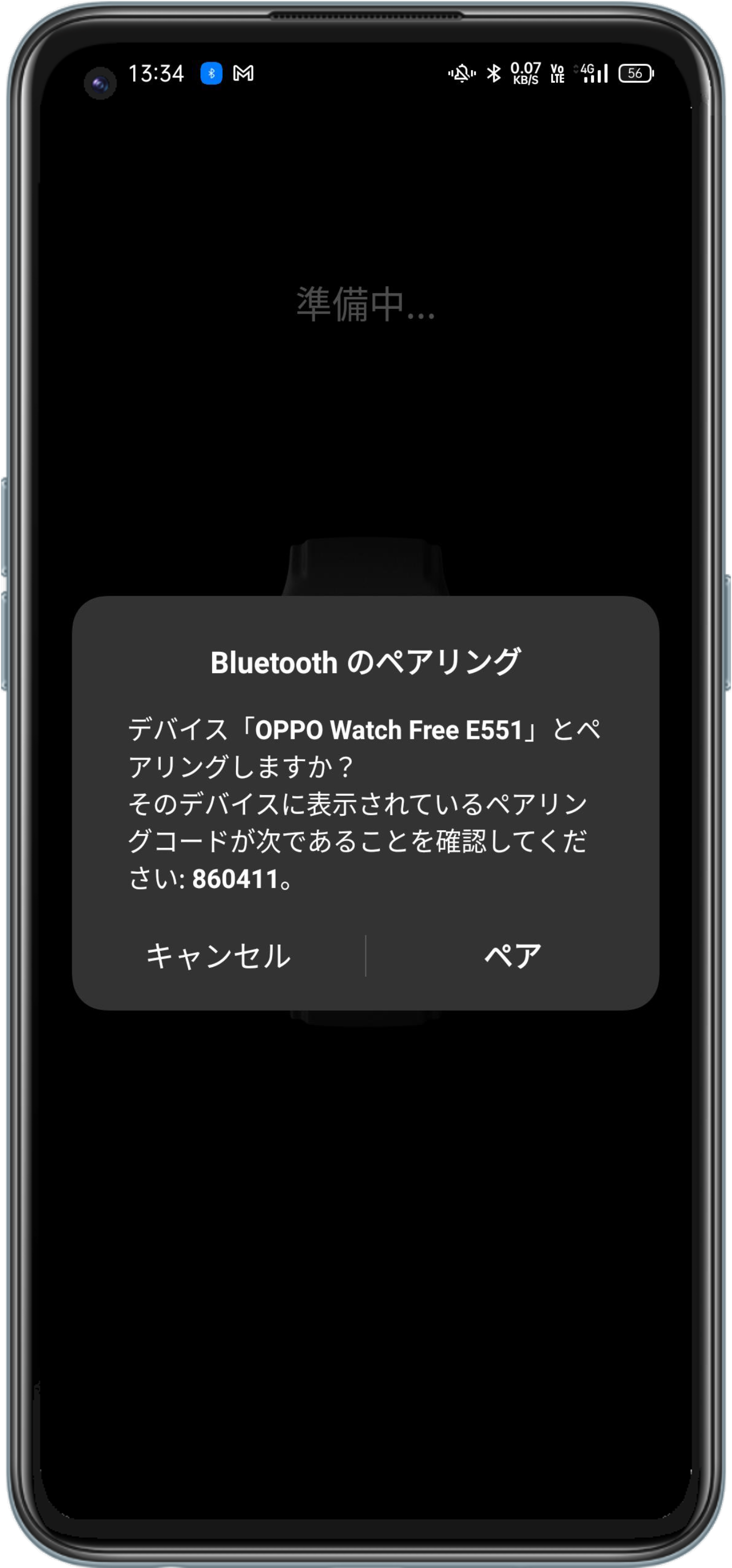OPPO Watch Freeとスマートフォンに表示されているペアリングコードが一致していることを確認し、[ペア]をタップします。