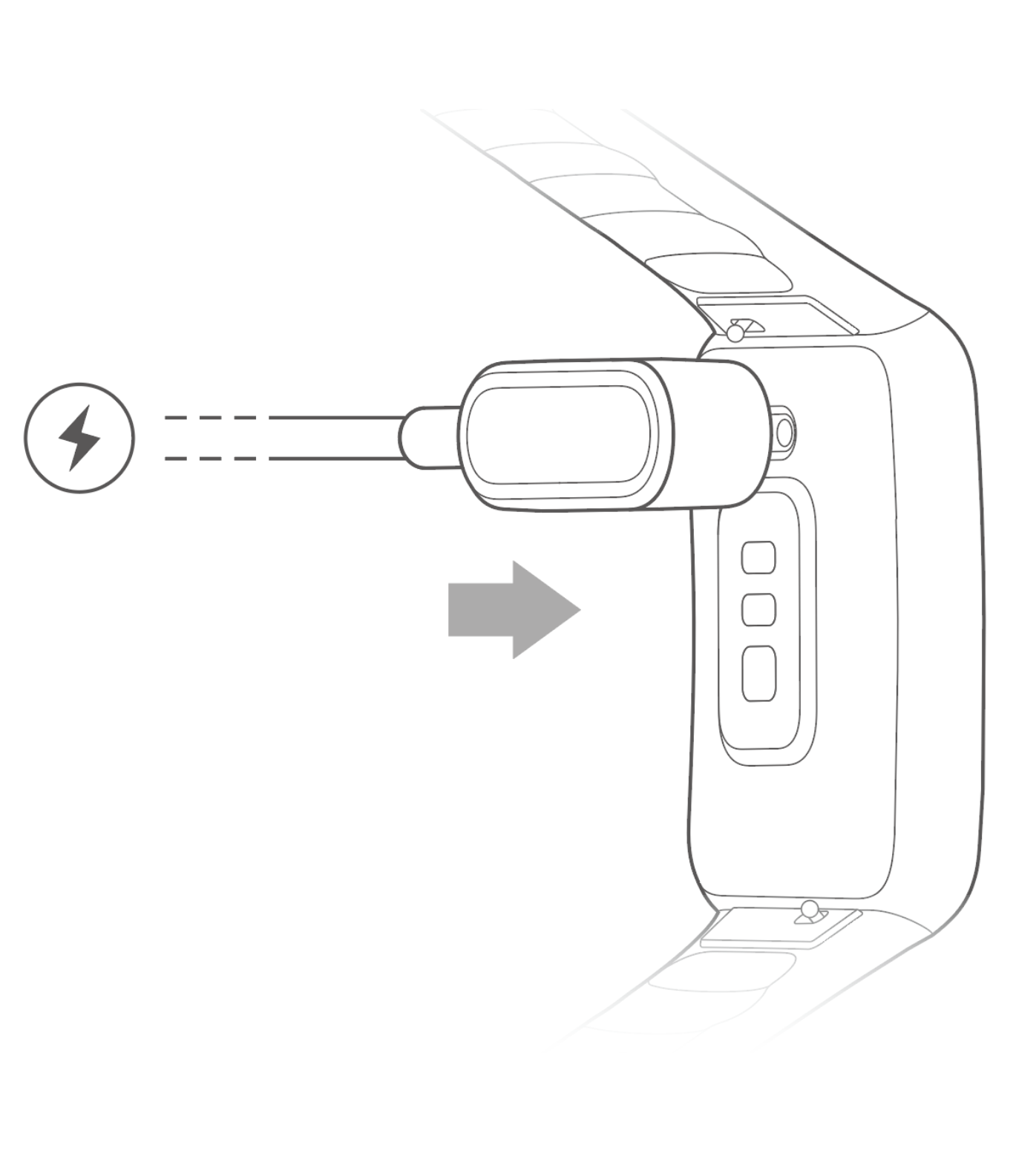 本体の充電端子を充電台の金属端子に合わせてしっかりと接続します。充電台を電源と接続すると画面に充電アイコンが表示されます。