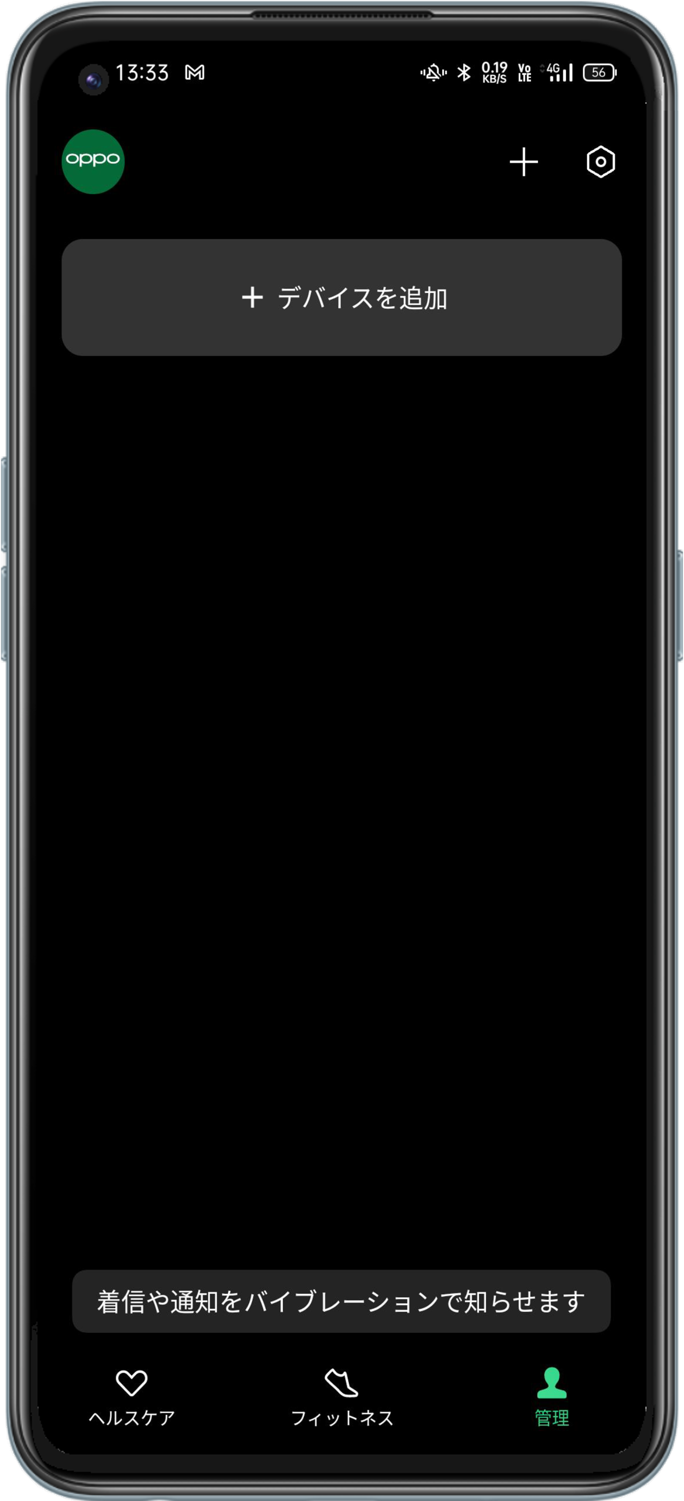 HeyTap Healthアプリを開いて[管理]タブに移動し、[デバイスを追加]をタップします。