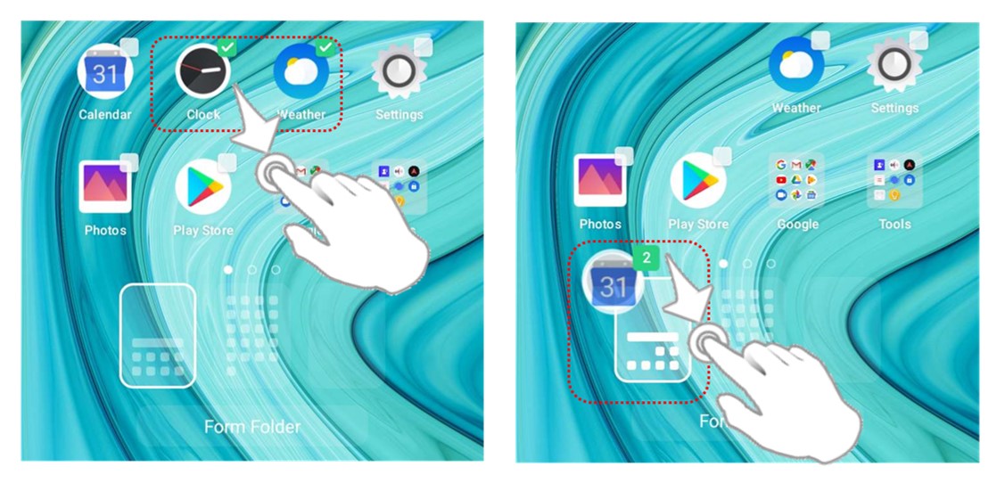 1. Pinch with two-fingers at any part of the Home Screen.