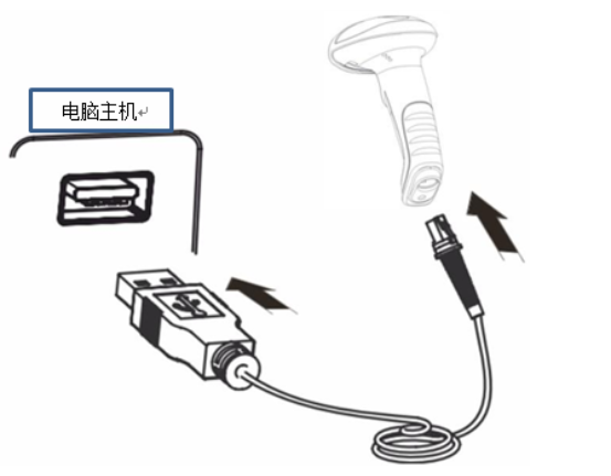 Pertama, hubungkan kabel data USB pada ujung port perangkat (port RJ45) ke bagian bawah alat pemindai, dan hubungkan kabel data USB pada ujung portutama (port USB)ke port komputer, seperti ditunjukkan pada Gambar 7-1. Setelah tersambung ke komputer, pistol pemindai barcode berbunyi bip beberapa kali, dan setelah menekan tombol pemindaian barcode, ada lampu garis merah, yang menunjukkan bahwa itu dapat digunakan secara normal.